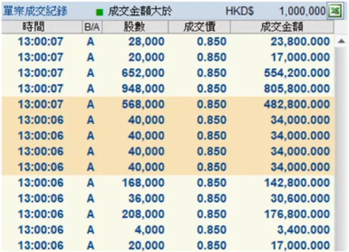 图 17:2840万股以0.81-0.85港元的价格成交