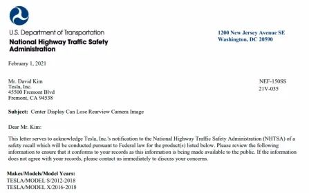 在此之前,美国国家公路交通安全管理局(NHTSA)要求特斯拉召回部分Model S和Model X车型,共计15.8万辆。在美国监管机构的压力下,特斯拉宣布召回近13.5万辆存在触摸屏问题的车辆。