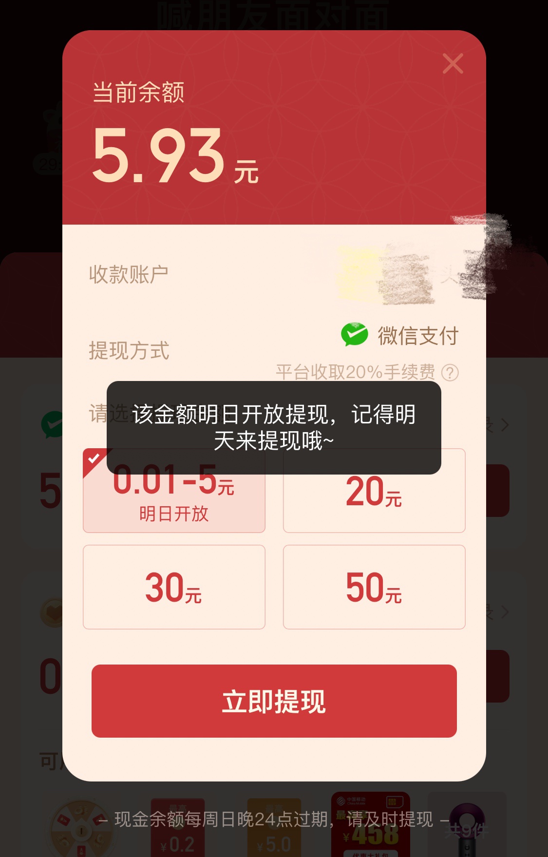 不仅达到提现门槛比较花费功夫,拼多多还称,提现需要收取20%的手续费。若一直未将现金奖励提现,现金将会在每周日过后自动清零。