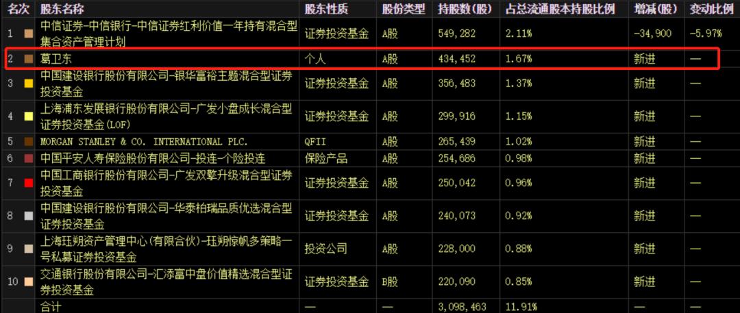 据数据统计,葛卫东、王孝安、李欣、赵建平等牛散位居前十之列。从上市公司十大流通股东名单统计,持仓总市值分化较大,明星效应也是尤为明显,其中,葛卫东以102.93亿持股总市值独占鳌头,此外,王孝安、李欣二人以逾10亿持仓总市位居第二、第三。