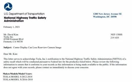 美国当地时间2月2日,美国国家公路交通安全管理局(NHTSA)在网站上发布了新的召回公告。公告显示特斯拉已经申请“自愿”召回134951辆Model S和Model X汽车,理由是这些车辆上的嵌入式多媒体存储卡故障导致中控屏幕无法正常使用。据媒体报道,此次召回成为特斯拉成立以来最大规模的一次故障召回。