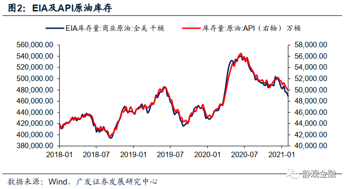 疫情不确定性降温,发达经济体群体免疫有望加速,原油需求恢复预期增强。原油是受疫情掣肘最为显著的资产,所以我们一直强调原油是“疫苗概念资产”。只有疫情不确定性降温,航空、运输等原油终端需求才能逐步、快速恢复。1月7日以来全球每日新增新冠确诊人数高位回落,部分国家疫苗接种亦有所提速。以美国为例,2月8日疫苗接种7日均值为147万人/天、2月14日已提速至168万人/天。此外,我们在报告《拜登刺激或将助力美股迎最后一波Risk-on》中指出,1.9万亿美元拜登刺激有望于3月初落地,刺激方案涉及疫苗采购,也有助于美国加速实现群体免疫。上述种种意味着投资者对原油需求恢复的预期进一步增强。