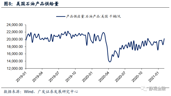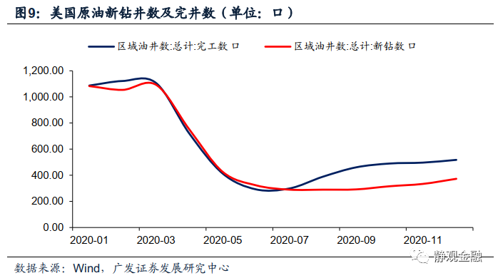 3月或仍为原油的表现期,但Q2油价可能走平。首先,沙特增加减产的时间为2-3月。尽管沙特供给策略的调整与拜登新政有关,但那是战略层面的考虑,从战术上看目前的油价已经推动美国积极增加了原油供给(图8-9),因此3月后沙特继续大幅减产的可能性不太高。其次,3月初1.9万亿美元拜登刺激有望落地,靴子落地前及之后的一小段时间或许是市场最为亢奋的阶段,随后这种情绪亦将逐步降温。综上所述,不排除未来1-2个月油价继续上涨5美元(或10-%)的可能性,但再往后看则需转为谨慎。