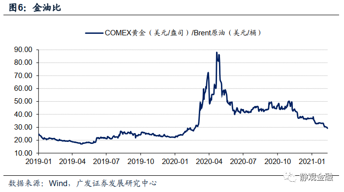 2)3-5月美国通胀大幅攀升,但财政刺激约束长端美债收益率上行斜率,因此实际利率进一步走低,阶段性利好黄金;