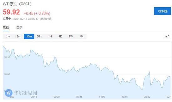 美油周二保持涨势,亚市早盘一度涨破63.30美元,日内涨超1.4%,欧股开盘后回落到60美元下方,美股午盘时日内涨超0.7%。