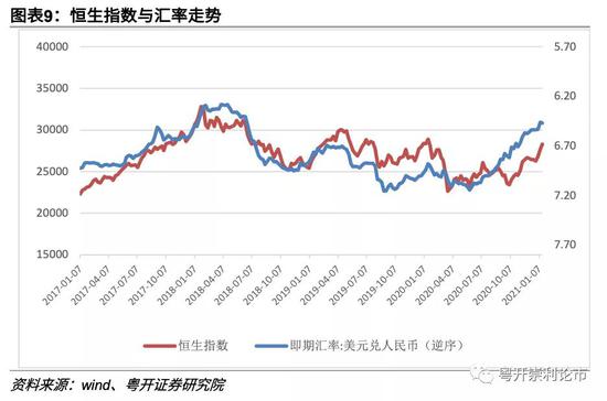 (二)人民币保持强势。观察近年来恒生指数和美元兑人民币走势的相关性可以看出,人民币升值阶段,港股往往也表现较好,两者呈现出比较强的相关性。虽然人民币可能不会单边持续升值,但整体来看目前仍然处在上升通道当中,有望持续保持强势。