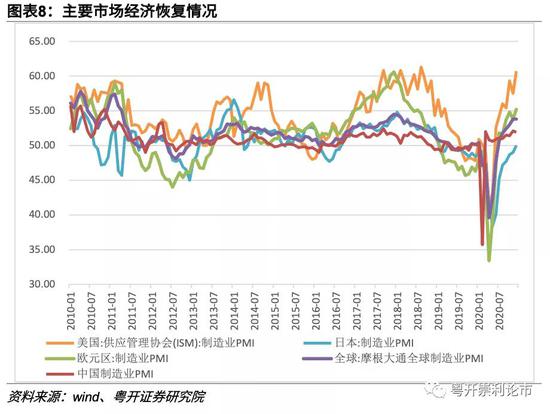 (一)全球经济复苏+风险偏好提振。2020年,疫情对全球经济造成巨大冲击,全球经济均出现断崖式下跌,尤其是发达国家的跌幅更深,2021年,随着疫苗逐步问世并广泛接种,疫苗的大规模铺开,将使得疫情逐步得到有效控制,全球经济持续温和复苏并形成共振。良好的宏观经济环境使得全球资产迎来风险偏好的修复窗口。
