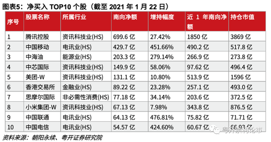 南下资金成交占比已超10%,趋势性流入的行业与个股值得研究。自陆股通开通以来,北上交易活跃度持续提升,交易占比已升至10%之上的水平,北上资金不仅改善了A股的投资者结构,还通过长期的流入改变了A股的投资价值取向,使得“核心资产”深入人心。近期受到南下资金大幅流入助推,南下交易占港股总成交的比例比创下历史新高的26%,考虑到交易的双向性,那么南下成交占比也达到13%左右水平。随着南下资金的长期持续流入,南向资金也有望影响港股市场的投资风格与偏好,那么南向资金趋势性流入的行业与个股就值得我们去研究,也就是南下的“核心资产”。
