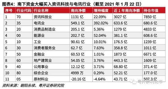 南下资金近期净买入主要集中在新经济股与电讯股,CR2占比超七成。从近1个月的净买入来看,主要集中在资讯科技业、电讯业、消费品制造业、能源业等行业,期间净买入额均超过200亿,CR2占比超过70%。我们看到南下对电讯、能源、资讯科技板块的增持幅度显著增加,另外,从买入持续性来看,资讯科技业、能源、工业、消费者服务板块的买入持续性较好。