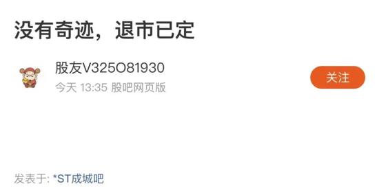 但*ST成城并没有借到这一东风实现“逆袭”。投资者用脚投票,牢牢地将*ST成城按在跌停板上。直至收盘,*ST成城报收0.80元/股。股民称“没有奇迹,退市已定”。
