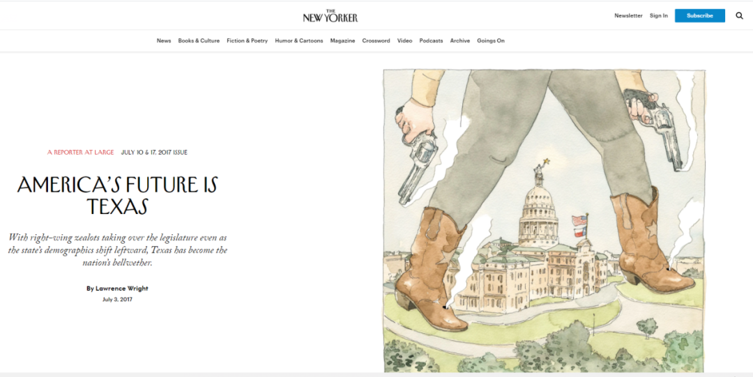 2017年,专栏作家赖特,也是一位地道的得州人,在纽约客写了一篇《美国的未来在得克萨斯》,其中他这样描述得州人:
