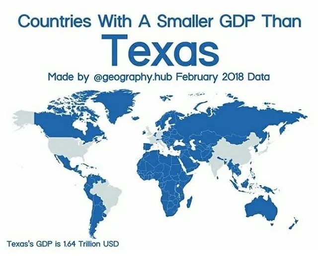 假如自成一家,得州的GDP总量能排在世界第十,比加拿大还要高。