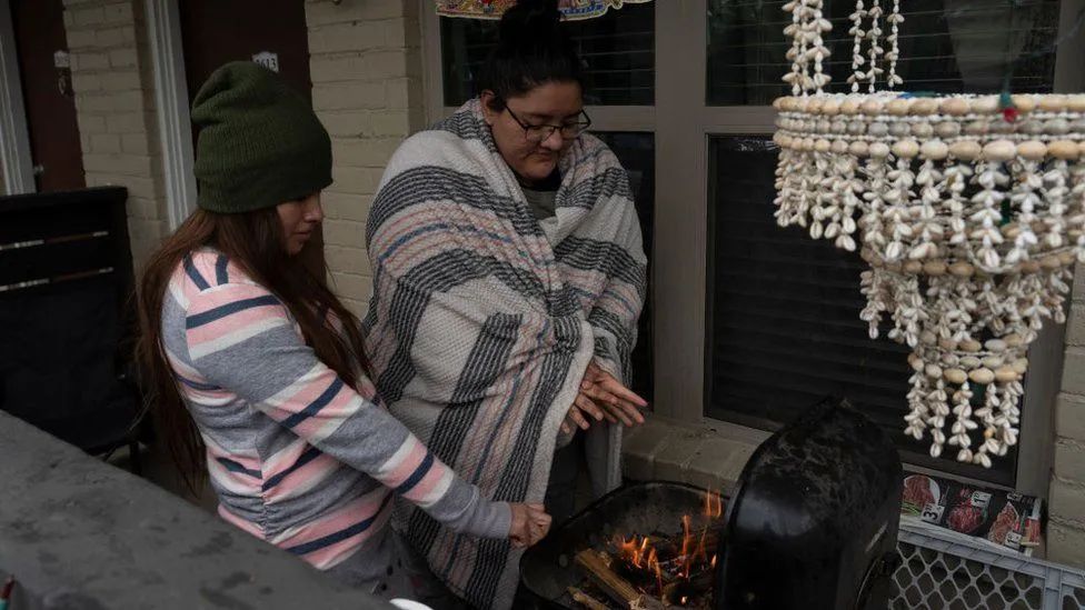 因为电力系统崩溃,许多得州人不得不想尽办法取暖:一家人躲在衣橱里紧紧抱着;通过烧小孩的玩具积木和房子门口的木栏杆得到一点热量;排长队去加油站买汽油,去野外砍木头,使用燃气、烧烤炉、甚至躲在车里。