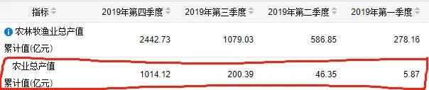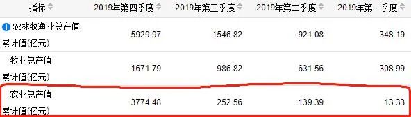 如何来解释这一现象呢?我们可以从黑龙江2019年农业产值中找到答案。四个季度分别为: