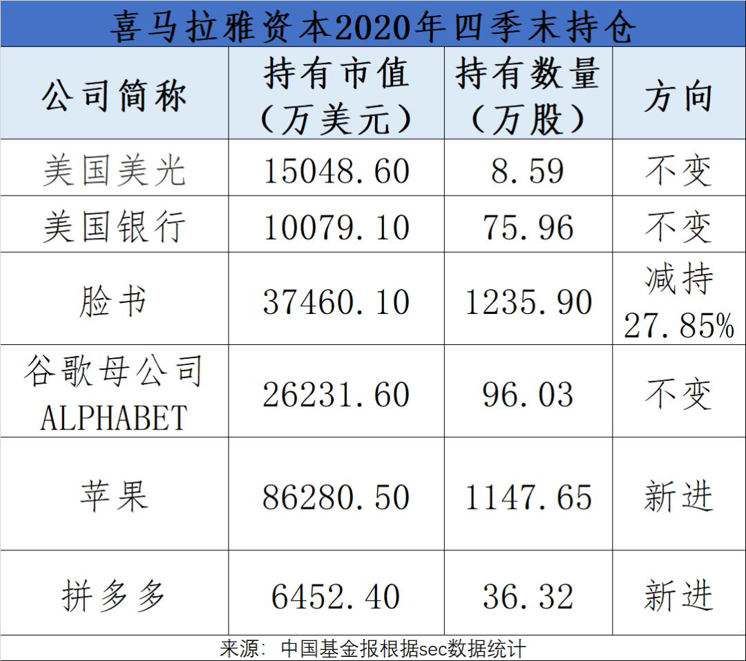 此外,他还新进买入1147万股苹果,减持了近30%的脸书。