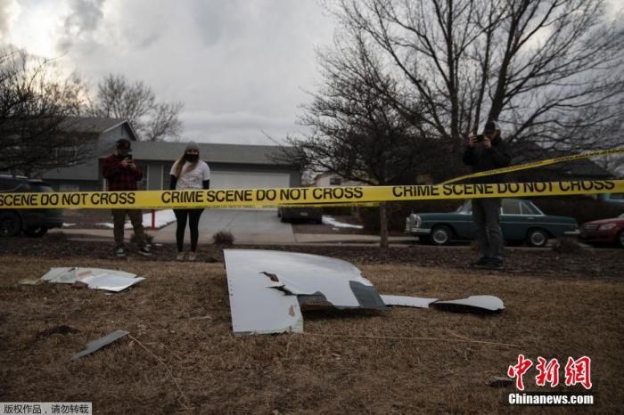 当地时间2月21日,在科罗拉多州丹佛市郊外的布鲁姆菲尔德附近的居民区,发现从美国联合航空公司飞机引擎上掉落的碎片。