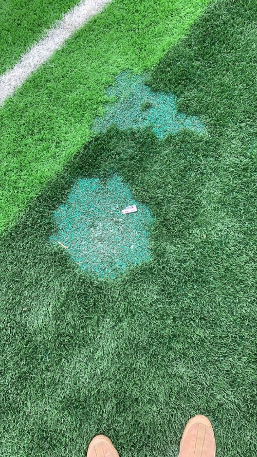 “截止2021年2月20日18时,已对该足球场内破损的人工草坪修缮完毕,并明确不再将该区域作为赶集区域,做到专场专用。”