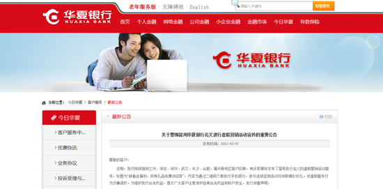 华夏银行声明,请广大客户不要轻信虚假宣传内容。如有客户因虚假营销活动、非法网站和APP、诈骗电话或接受其他非法金融服务而受到任何损失,或发现通过冒用该行名义、仿冒该行APP、网站、联系电话等提供非法金融服务的行为,请及时向当地公安机关举报。