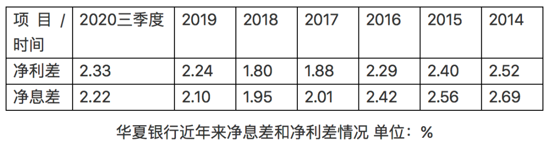 从影响利润的净息差指标来看,虽然整体银行业净息差呈压,但华夏银行2020年的净息差并没有变差,甚至还有所改善。2020年三季度,华夏银行净息差和净利差分别是2.22%和2.33%,较2019年的2.1%和2.24%均有所改善。