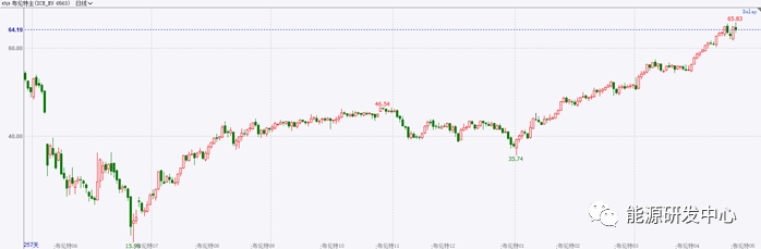 【3】NYMEX原油创一年新高触及63美元,短线仍有续涨动能但长期前景则变数犹存;① NYMEX原油价格在周二亚洲时段继续上涨,因美国得州石油生产在雪灾过后恢复进度缓慢,而全球疫情却在疫苗助力下正加速趋向缓和并进一步提振需求预期,同时伊朗核问题再谈判进程依旧步履维艰,且OPEC+内部仍对增产问题存在分歧;② 在此背景下,油市供不应求局面仍在继续加深,NYMEX原油短暂上触63美元关口,创2020年1月初以来13个半月新高,而分析师更是指出,油价去年4月创新低以来的反弹趋势,当前正开始威胁自2008年油价见得历史高位以来的长期下行趋势线,这可能意味着NYMEX油价后市在供需失效局面延续的背景下仍有进一步上行空间,目标首先上看2020年初的高点65.65美元,之后将进一步冲击70美元关口;③ 然而,油价能否长期维持上行,在圈内仍有不同意见,持悲观观点的分析人士认为,OPEC+恢复产能在当前背景下将是迟早的结局。而美国新政府“绿色新政”在打压的石油生产之后,更会推动能源转型遏制需求增长,并且新冠病毒疫情也在很大程度上永久改变了全球经济结构,这意味着油价或许不见得真能如多头投资者预期的一般涨上天际