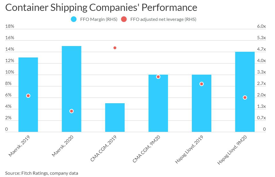 集装箱运输公司的业绩在2020年有所改善,这是由于尽管下半年货运量同比下降,但20年下半年的运费提高,并且在20第二季度的最严格停业期间进行了谨慎的运力部署。我们预计2021年的行业表现将保持良好,各个集装箱运输公司的业绩会因其路线组合,合同量比例和包租船队的比例以及集装箱库存的任何进一步支出而有所不同。盈利能力的提高导致2020年杠杆指标更强。
