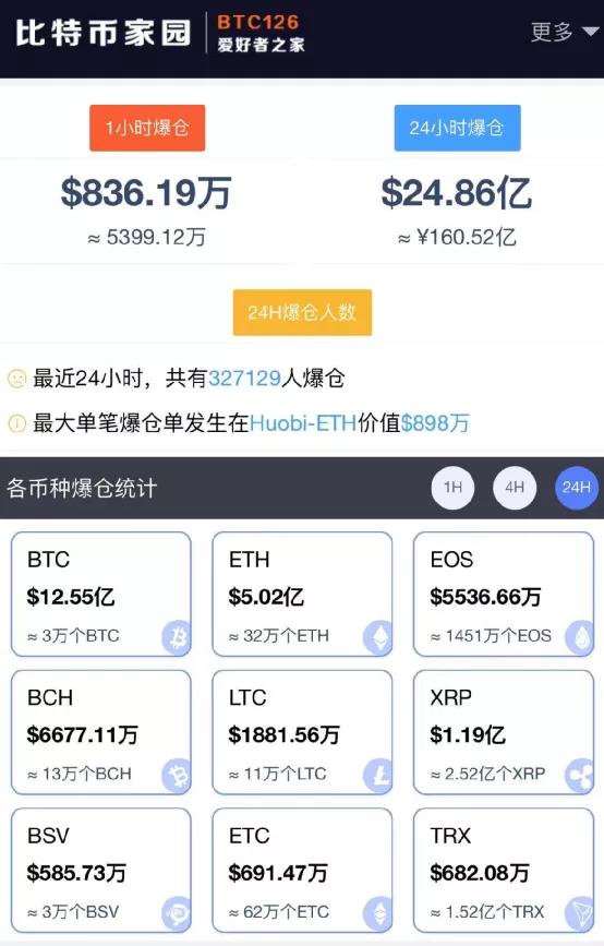 据比特币家园网,截止北京时间早7点,近24小时内就有近32.7万人爆仓,爆仓金额达160多亿人民币。