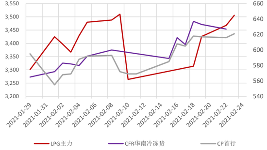 (1)国外受寒潮因素影响,出现短暂供需错配,外盘丙烷强势上涨,进口成本有所抬升。