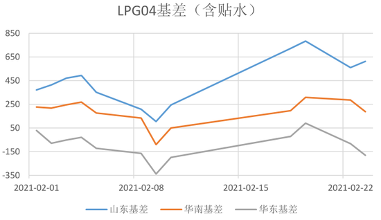 03仓单集中注销,而当前华南山东现货大幅升水期货盘面,空头没有交割利润,没有生成仓单的动力,所以基差需要进一步修正,在LPG盘面估值偏弱的情况下,加之基本面与原油利多因素驱动下,导致LPG盘面大幅上涨,基差大幅修复。