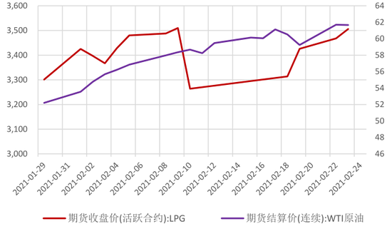 (2)国际油价强势上涨推动炼厂LPG成本抬升。