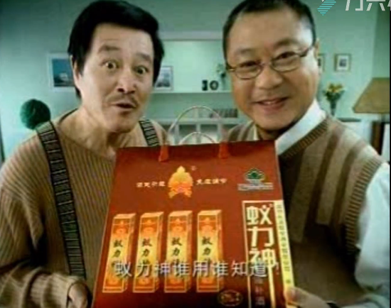 2002年,《刘老根》开播,剧中,主角之一的“药匣子”,称是吃蚂蚁产品而治好了多年的顽症,在片尾,出现了赞助商“蚁力神”。这一年,赵本山和范伟接下的“蚁力神”广告里,赵本山在沙发上看着报纸,范伟焦急地在他面前来回踱步,并有了这样一段台词: