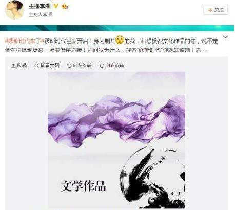 “缪斯时代全新开启!身为制片的我,和想投资文化作品的你,说不定会在拍摄现场来一场浪漫的邂逅,别问我为什么,搜索‘缪斯时代’你就知道啦,乖~”