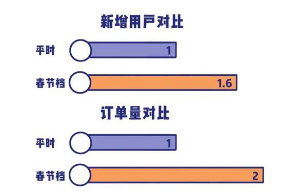 根据比心陪练APP在2020年春节期间公布的一组数据显示,春节期间,日均新增用户是平时的1.6倍,日均订单量是平时的2倍;1月24日-2月29日期间,用户累计下单完成超过6000万局游戏。