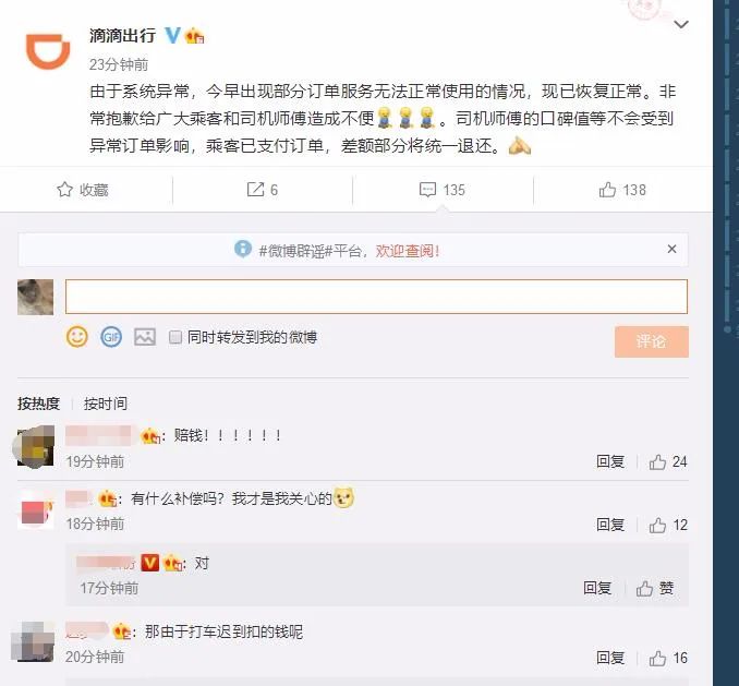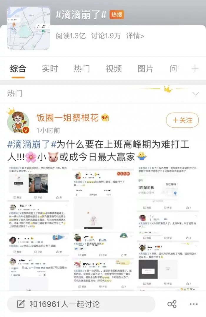 截至发稿前,词条#滴滴崩了#在微博阅读量已超1.3亿。