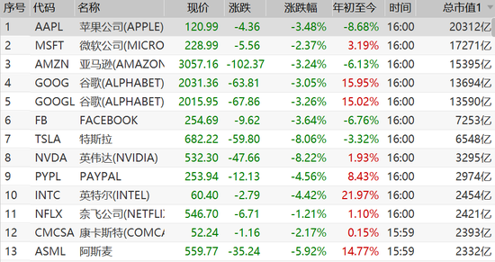 板块层面,估值偏高、对利率上行敏感的可选消费、科技、通信服务等成为重灾区,避险板块如公用事业、医疗保健、以及受益于利率上行的银行等跌幅相对较少。苹果、亚马逊、谷歌等跌超3%,特斯拉、英伟达跌超8%,拼多多、阿里巴巴跌超4%,网易跌近8%,小鹏汽车、理想汽车、蔚来等更是跌近10%。