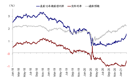 大方向上,美债长端利率的上行,与近期全球整体疫情改善、疫苗接种加速、美国新一轮1.9万亿财政刺激渐行渐近背景下,增长和通胀预期进一步向好的大方向一致。