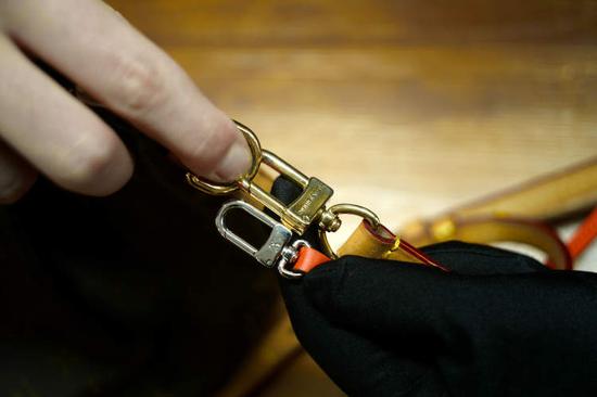 而在配件五金方面,仿冒商品的五金材质往往比较粗糙,背带搭扣处松动明显,而正品的五金表面就较为平整,牢固度也更高一些。