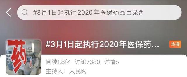 今天一早,话题#3月1日起执行2020年医保药品目录#就上了热搜。