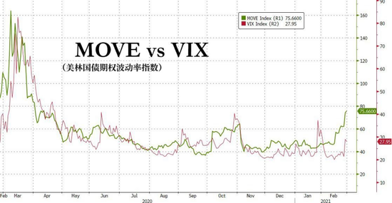 尽管债券隐含波动率飙升,远超VIX指数,有可能进一步波及股市,但到目前为止,美联储仍没有干预债券市场的信号。