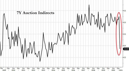 另外,7年期国债的国外需求也跳水式下滑。