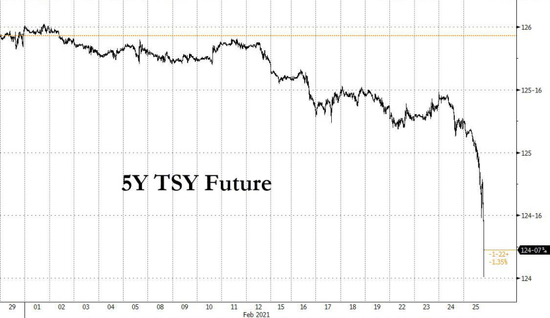 长期债券的买需下跌引起了抛售风暴,债券期货市场出现大规模平仓止损,5年期国债期货崩跌。