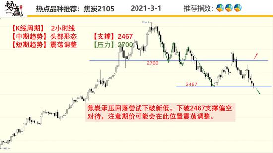 螺纹今日整体呈现调整偏弱态势,期价两次下探4600支撑均未能下破,支撑有力,1小时线在4600~4740形成震荡收敛区,预计短期仍难以摆脱震荡行情,建议4600之上偏强对待。注意若下破4600将展开更大回调,届时多单建议离场。