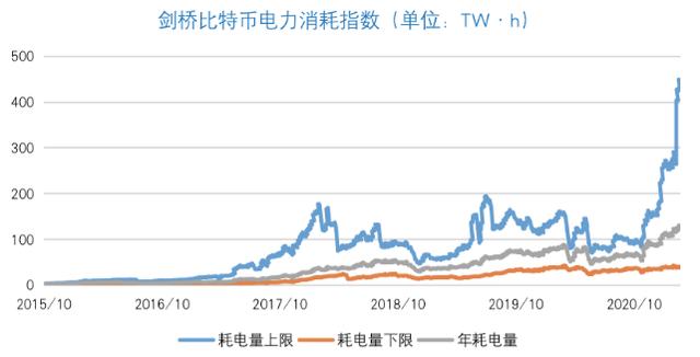 欧易OKEx研究院分析,比特币挖矿的耗电量可以根据“剑桥比特币电力消耗指数”(CBECI)来衡量。该指标由剑桥大学创建。该指标综合考量了数十种矿机,计算出矿机综合效率和综合电力效率,从而估算在当前算力水平下比特币挖矿的年电力消耗量及其上下限。