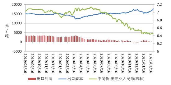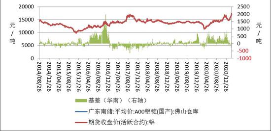 2月,广东现货均价15984.29元/吨,较上月上涨853.50元/吨,或5.64%,波动范围:15000~17560。2020年同期广东现货价均值为13564.50元/吨。2月广东现货均价处于5年同期的最高位。