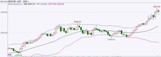 综上所述,全球流动性持续宽松,库存有所回落,利好伦铝。技术上看,月K线突破布林带上轨,月级别MACD指标红柱放大,预计3月伦铝高位震荡,运行区间2150-2250。
