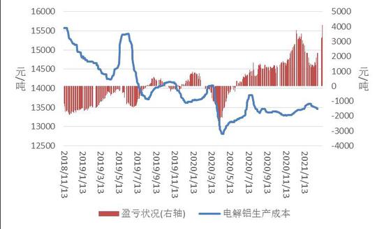 图表11 电解铝生产成本及盈利变化