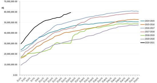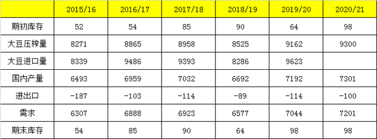 政治因素和恶劣天气造成2019/20年度美豆减产,而中国饲料需求持续增加,中美关系缓和后矛盾凸显,2020/21年度美豆库存降至低位。