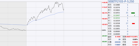 与之相应的期权纷纷异动,其中,行权价为5.25的300ETF认沽期权涨超110%。