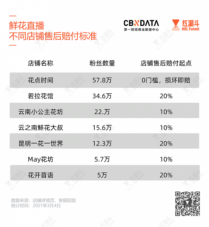 C站浏览后发现,网红鲜花店铺的售后起付标准并不相同。比如若拉花馆、昆明一花一世界,损坏20%以内都是正常范围,不会进行赔付。云南小公主花坊、云之南鲜花大叔这一比例是10%。花店时间的赔付门槛最低,店铺客服回应称,“损坏1支都会赔偿。”
