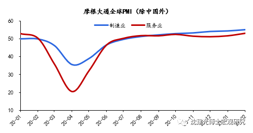 一方面气温开始回暖、疫苗接种加速,发达经济体逐渐走出秋冬疫情,经济活动景气度上升。至今年2月,摩根大通全球(除中国外)制造业PMI达到55.1,服务业PMI达到53.0,均为疫情暴发以来最高值;从其他出口国的表现看,2021年前两个月韩国出口增10.5%,越南出口增23.3%,亦对全球需求复苏构成印证。