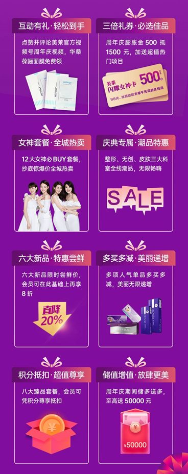 三倍礼券必选佳品:周年庆膨胀金500抵1500元,加送千元热门项目(BB光、丝丽动能素等6选1);
